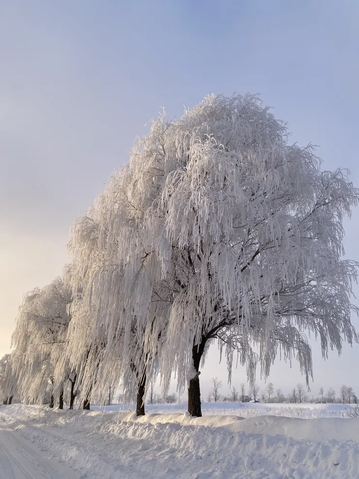 樹氷の写真に凍てつく寒さを感じます。しかしながら美しいです。