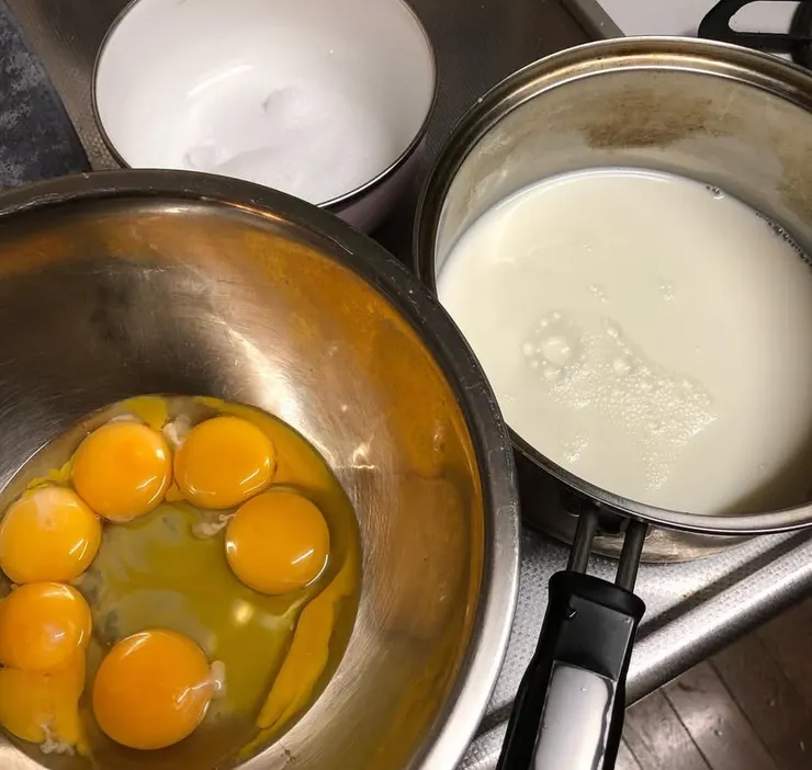 砂糖、牛乳、卵の3種。使う材料はシンプルだけど作り方でいろんな風に変わるから面白いプリン。