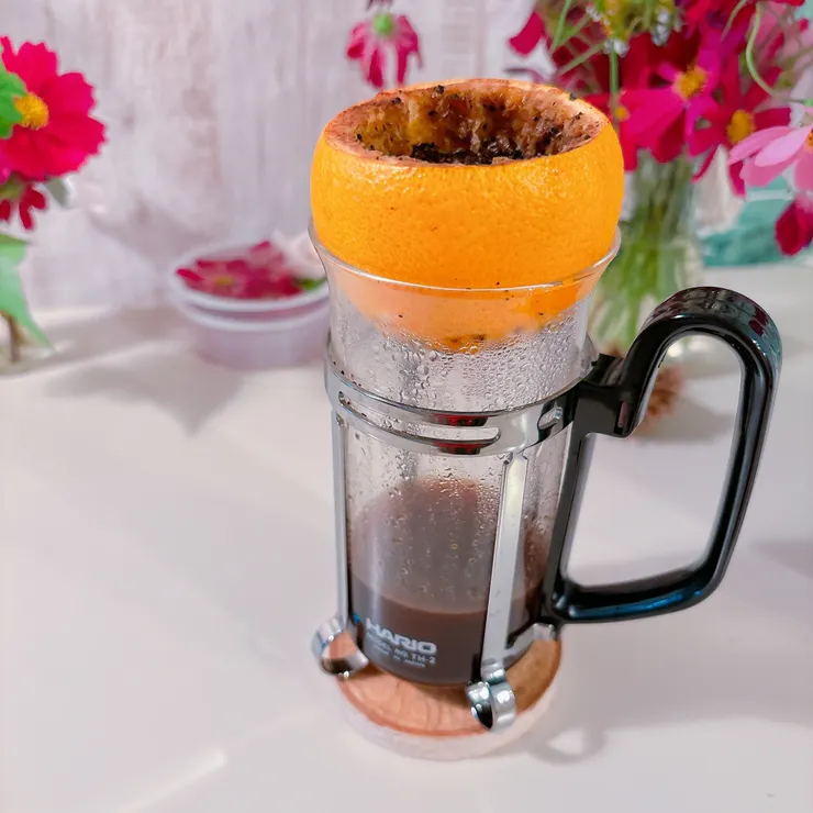 オレンジの皮フィルターのコーヒーにチャレンジ。