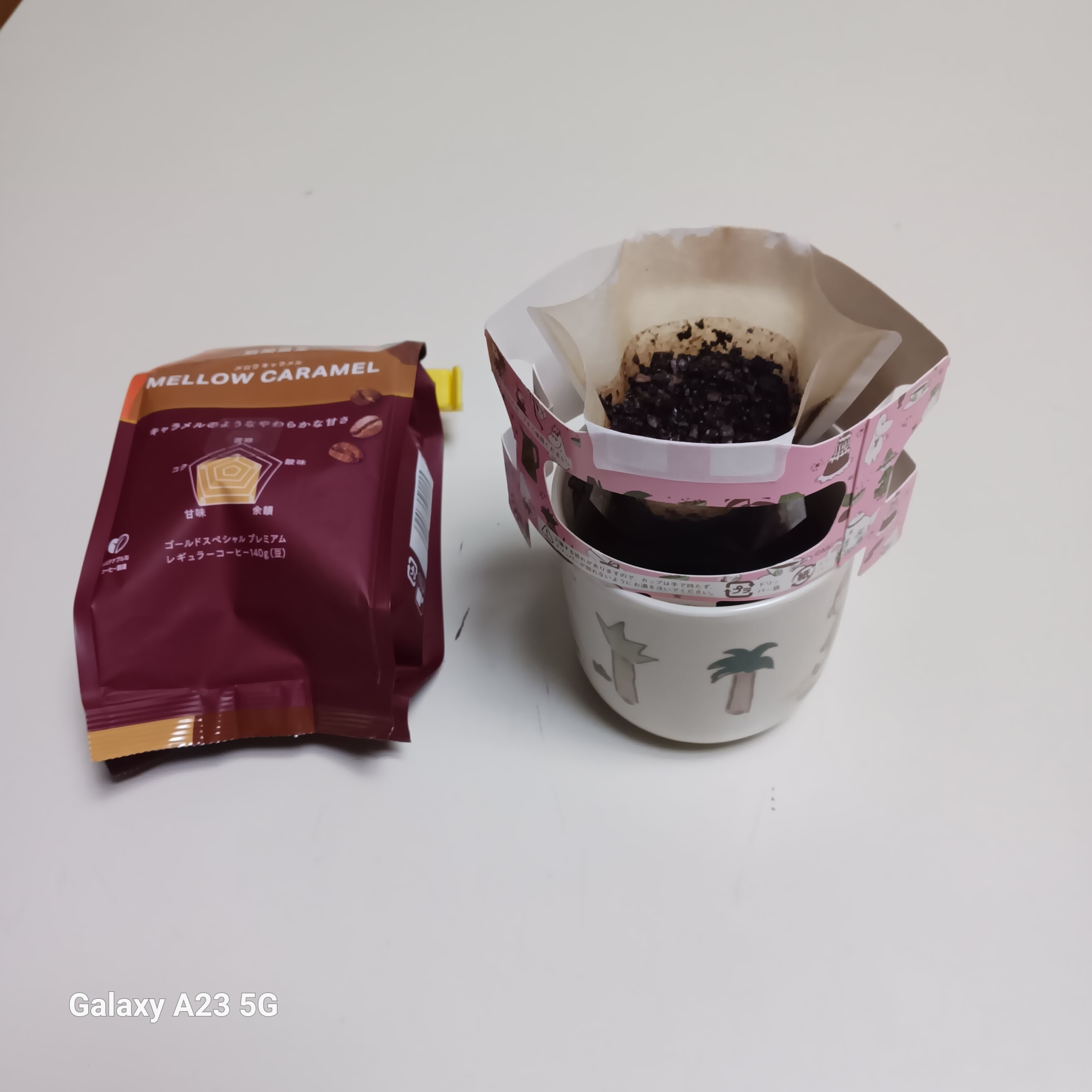 メロウキャラメルを淹れた後のフィルターを他のカップに借置きして蓋をしておいてのだが、しばらくして蓋を開けてみると、甘ーい香りが…これか!と感動してしまった。飲んでいる時はさほど認識できなかったので、感覚が鈍いのだと思う。次はもっと香りに集中してみたい。蓋をしていたのが良かったのかな…