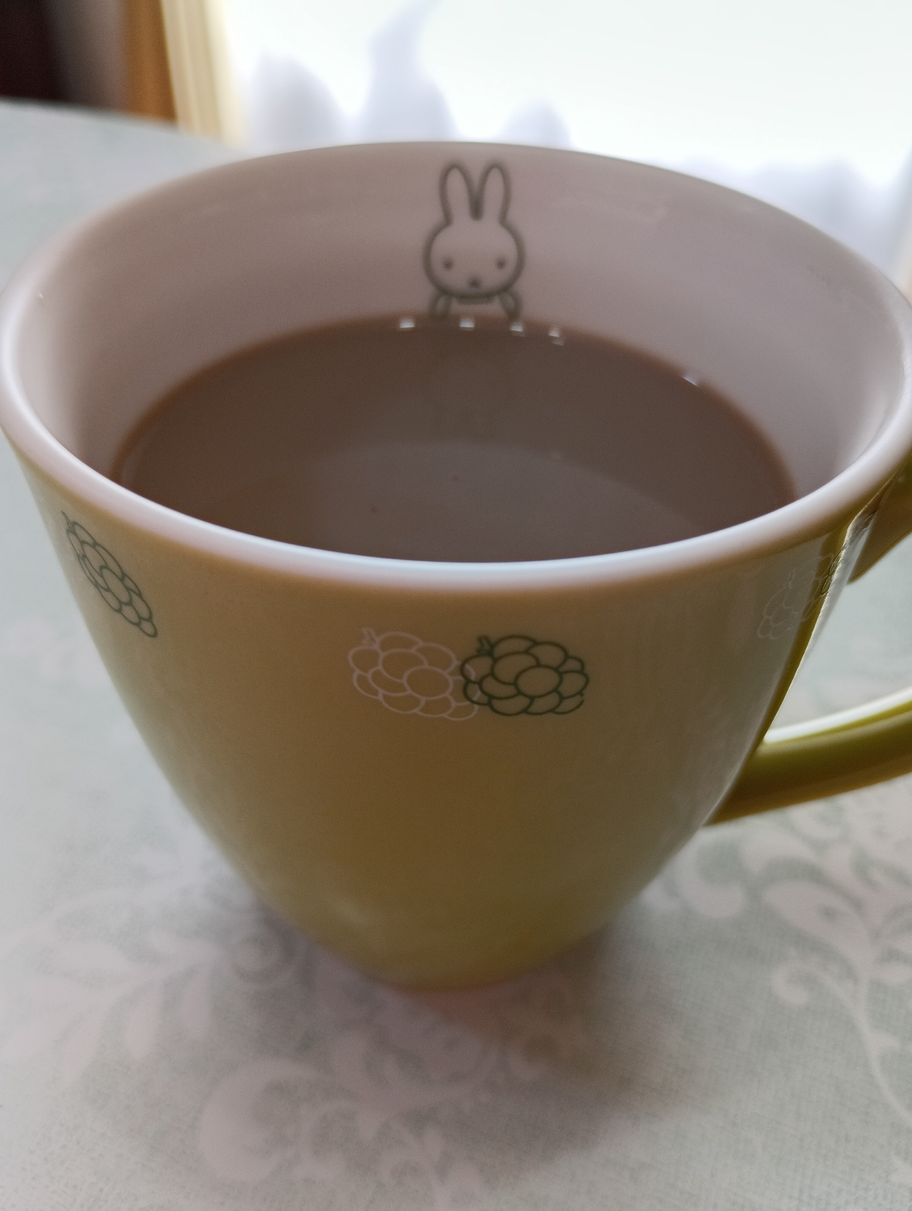 カップの内側のミッフィーが茶色のテーブルについてるみたいでカワイイです~🟫🪑🐰💕