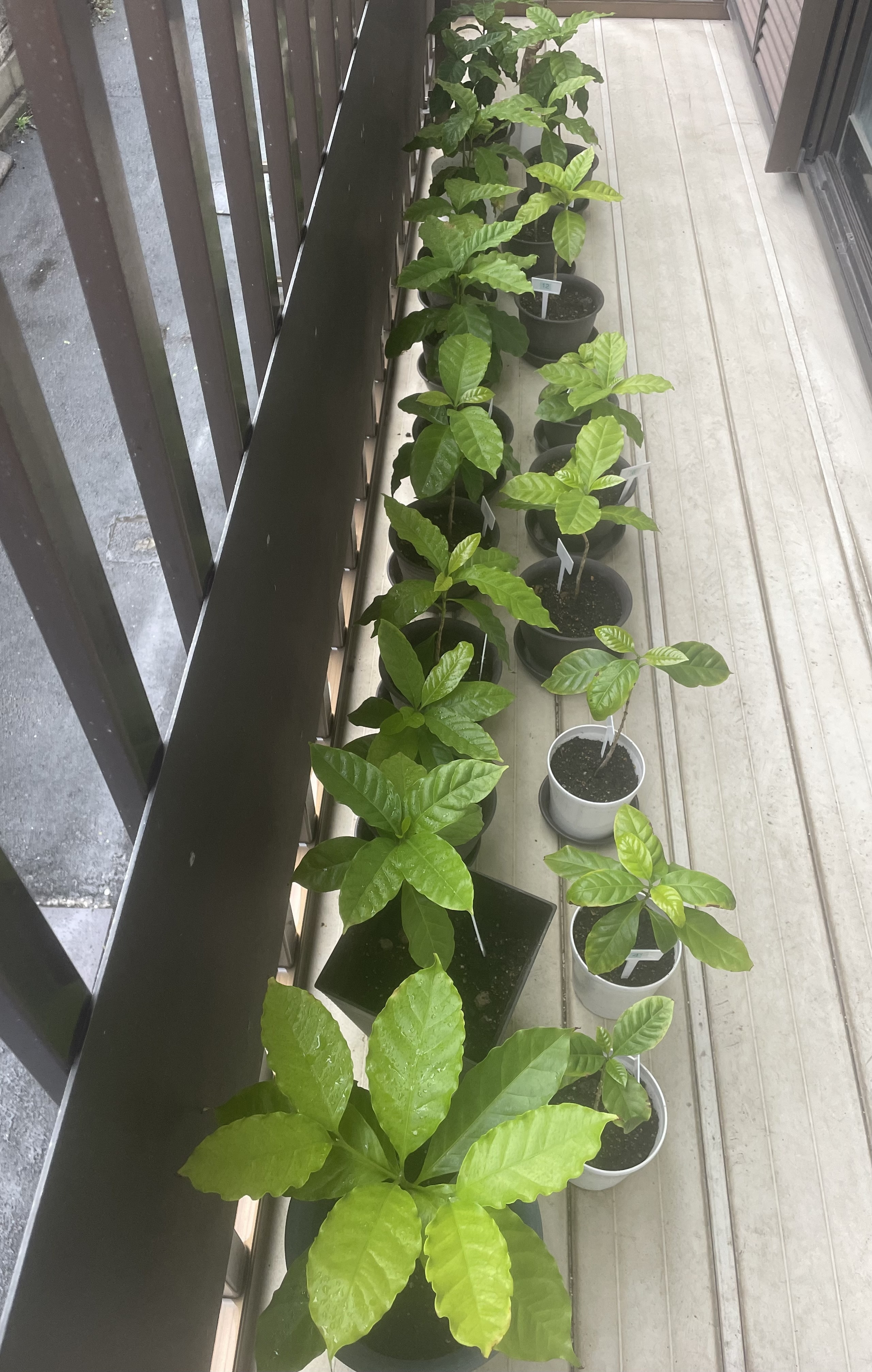 ずらりんと並んだコーヒーの木さんたちの姿は壮観ですね✨