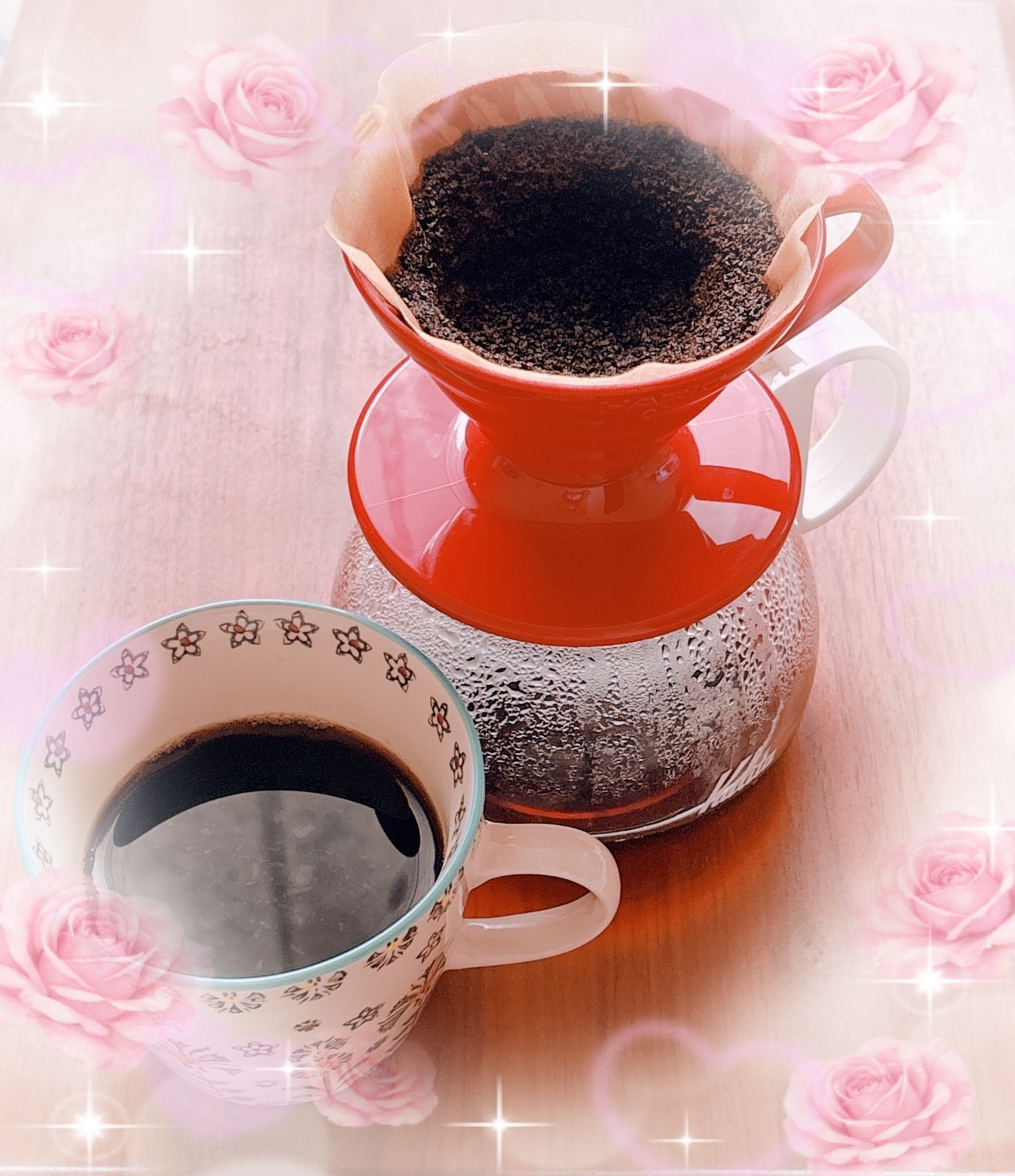 📎珈琲(粉):メジャースプーン2杯 、お湯:400ml、ドリッパー:HARIO V60 透過 コーヒードリッパー、細口のドリップポット使用