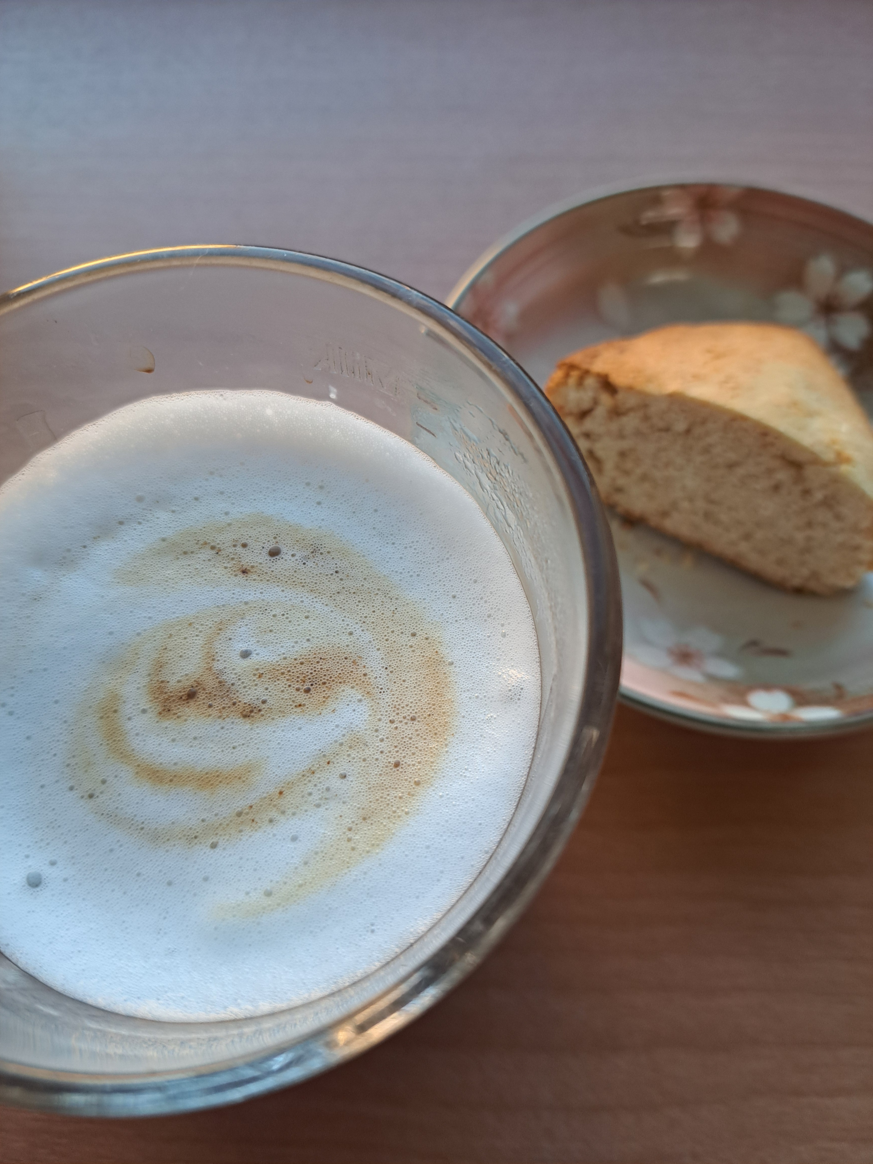 最近は車通勤でしたが、チャリでもいける距離なので、今日は軽い運動にとチャリ♪ 行きはよかったのですが、帰りは寒いし、風もあり、知覚過敏のか歯にも寒さしみる… 帰宅後に軽く家事したら、カフェラテタイム! スコーンは夫の分を残しリベイクし、 熱めに仕上げたカフェラテとグビッとやったら、我慢ギリギリな熱さ!(笑)
