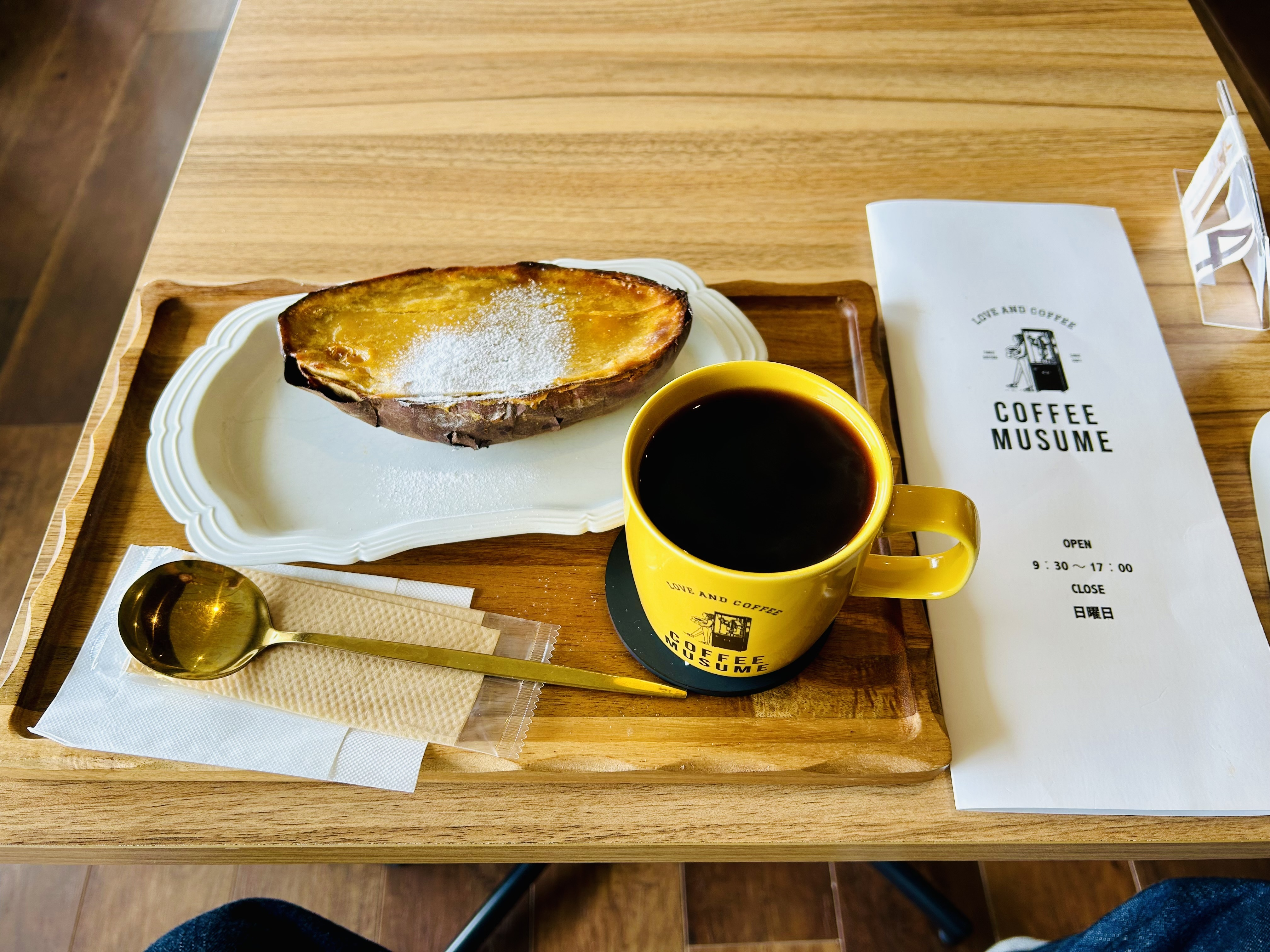投稿を表示すごいコーヒーたっぷり!スイートポテトも半分ですね。