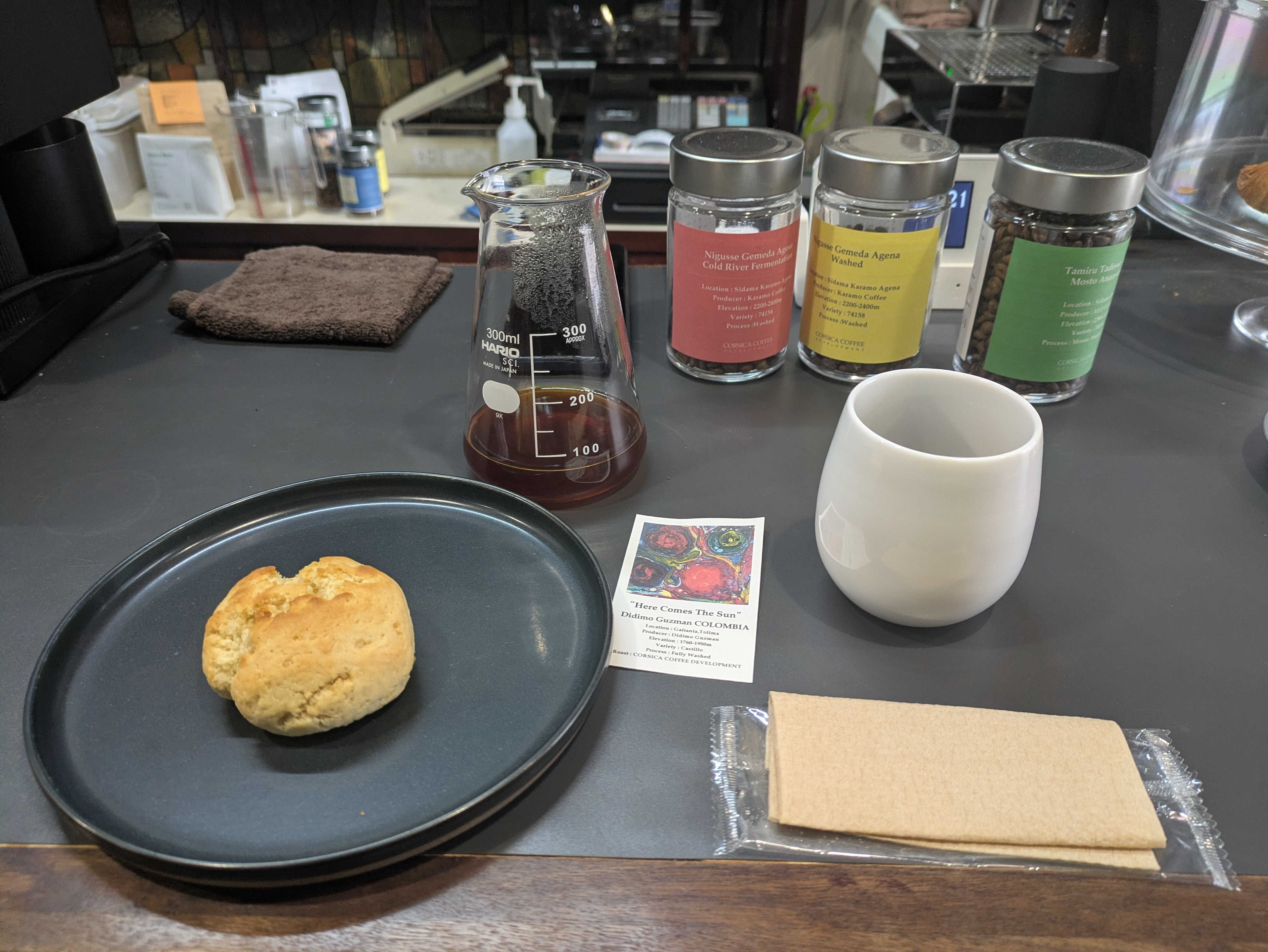 私はカウンターで、スコーンに合う珈琲を、淹れてもらいました。