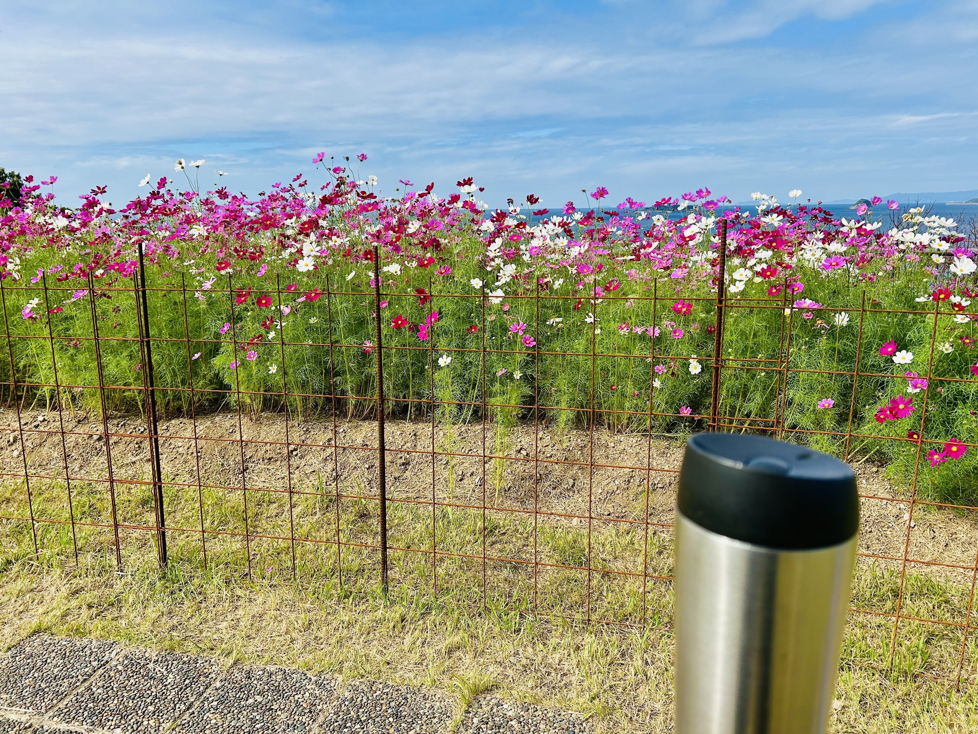 投稿を表示普段から山々に囲まれた暮らしなので、海原をバックにしたコスモス畑がとても新鮮です。そんな中でいただく珈琲もいいですね。