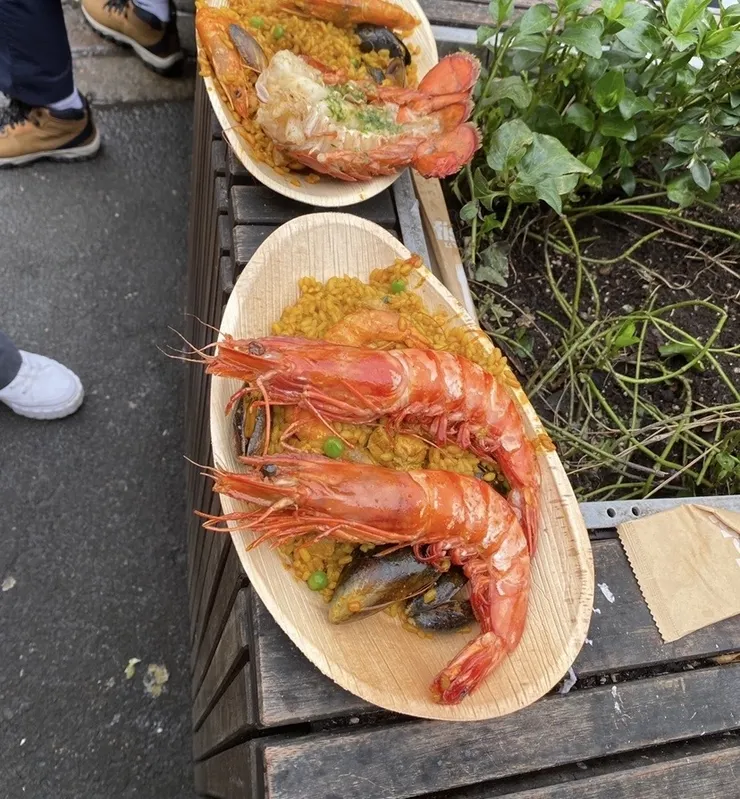 更に厳しさが増すのが写真に載せたパエリア。観光客の多いマーケットという事もあるけど一つ日本円換算5000円。これは流石に‥‥、味だってこれくらいなら家で作れるし。