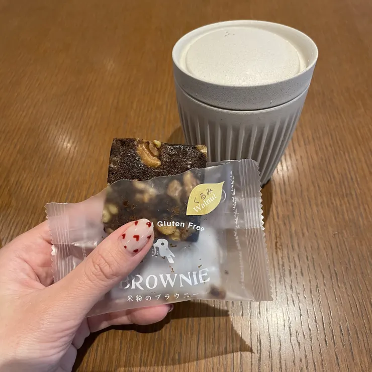 お供は米粉ブラウニーのくるみです♪食感サクサク〜たまらない🤤