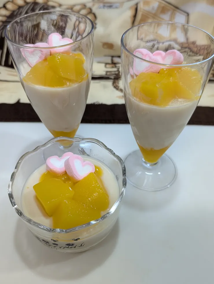 レシピではイチゴを使っていましたが、たまたまマンゴー缶があったのでマンゴーにしました✨