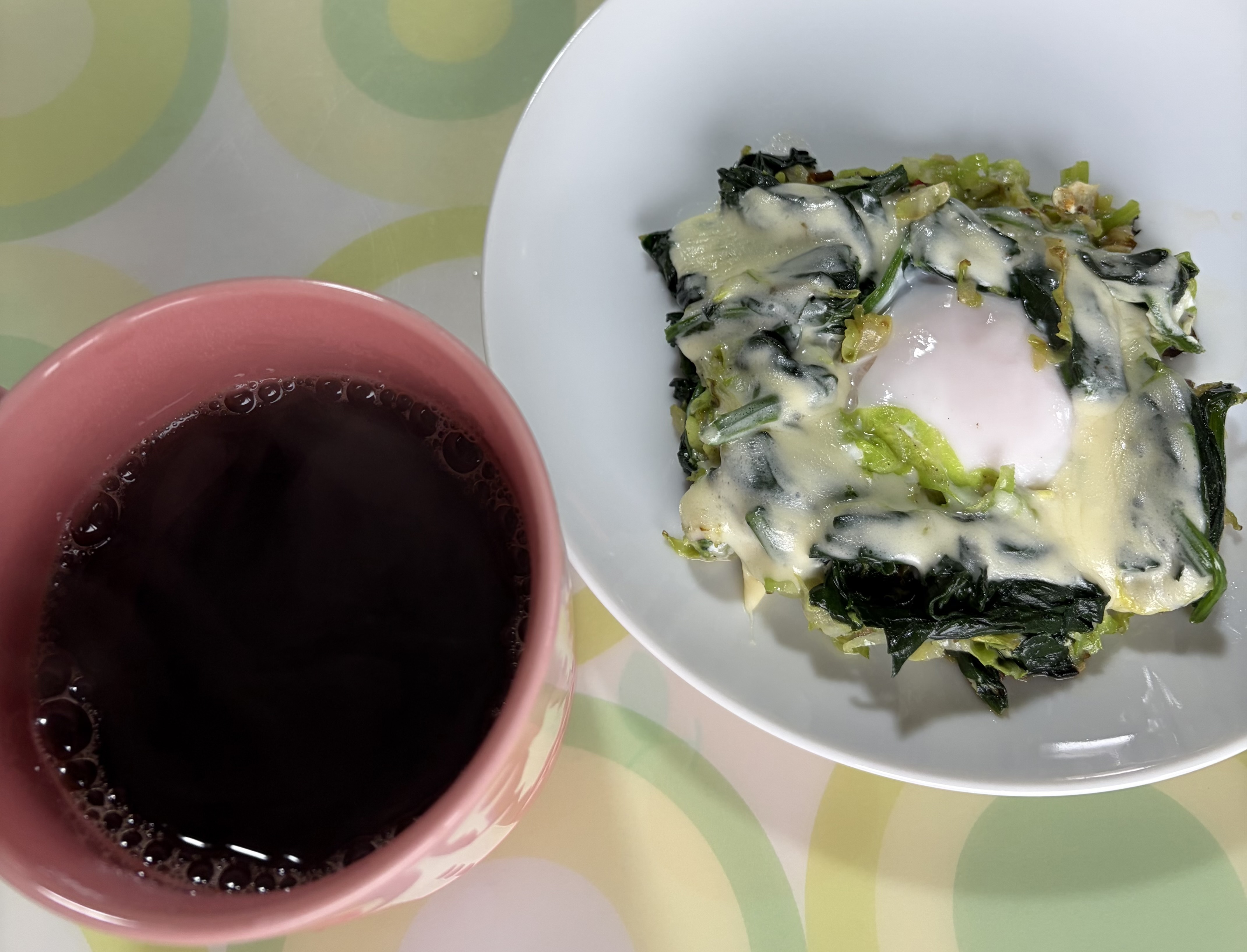 トップ > コーヒーギャラリー > 今日の一杯 > 野菜たっぷり目玉焼き なっつ 2026/04/02 11:19 野菜たっぷり目玉焼き 目玉焼き🍳 昨夜千切りしたキャベツと茹でたほうれん草 オリーブオイルで炒めて塩コショウ 玉子は目玉焼きにしてスライスチーズで囲って みたら美味しそうな仕上がり\(^o^)/ 今日はご飯で食べましたが、どちらかと言うとパンに合わせた方が良かったかな🍞 塩コショウとチーズ 塩不要🧂胡椒だけで十分でした。 美味しかった(,,•﹏•,,) オリジナルのひと品 🌸新年度の目標 牛乳をたくさん飲む 野菜たっぷり目玉焼き ご飯派パン派 半熟目玉焼き 冷蔵庫の食材 簡単レシピ 新年度の目標 いいね 共有する 共有する X facebook LINE リンクをコピー コメントする 1 件の返信 (新着順) ミュートしたユーザーの投稿です。 投稿を表示 あづちん 2026/04/03 23:47 子どもの頃は毎日給食で飲まされましたよね。 いいね 返信する ミュートしたユーザーの投稿です。 投稿を表示 なっつ 2026/04/03 23:55 あづちん そうですね(^^) 牛乳苦手ですか? わたしは大好きですよ。 目標は1日500㎖😌 いいね 返信する ミュートしたユーザーの投稿です。 投稿を表示 あづちん 2026/04/04 00:38 なっつ お陰様で骨折はありません。骨粗鬆症も心配ないかもです。 いいね 返信する