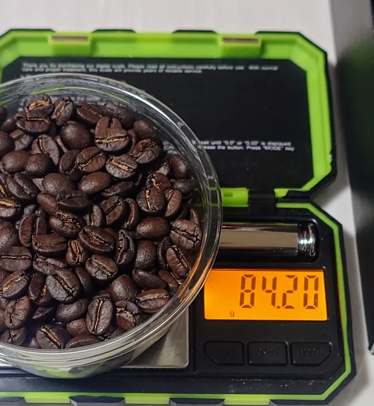 おすすめの焙煎度は中煎りですが、深煎りでも苦味は強くないだろうと思い、焙煎指数1.23と好みの深煎りに仕上げました😁