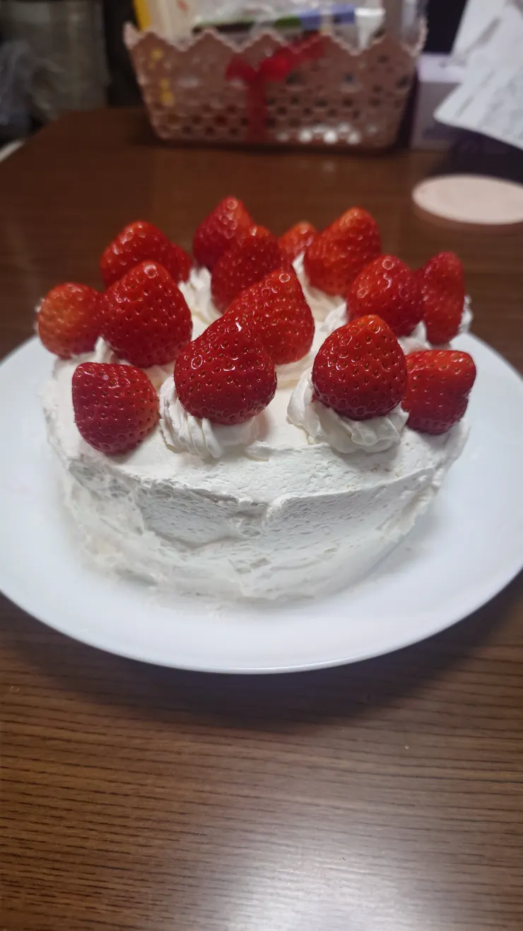 関西地方南部では有名なKawaというパン屋さんのケーキ用スポンジを知り合いからたくさんいただいたので、妻が自作のケーキ🎂をイチゴ🍓盛り盛りで作ってくれました😊
