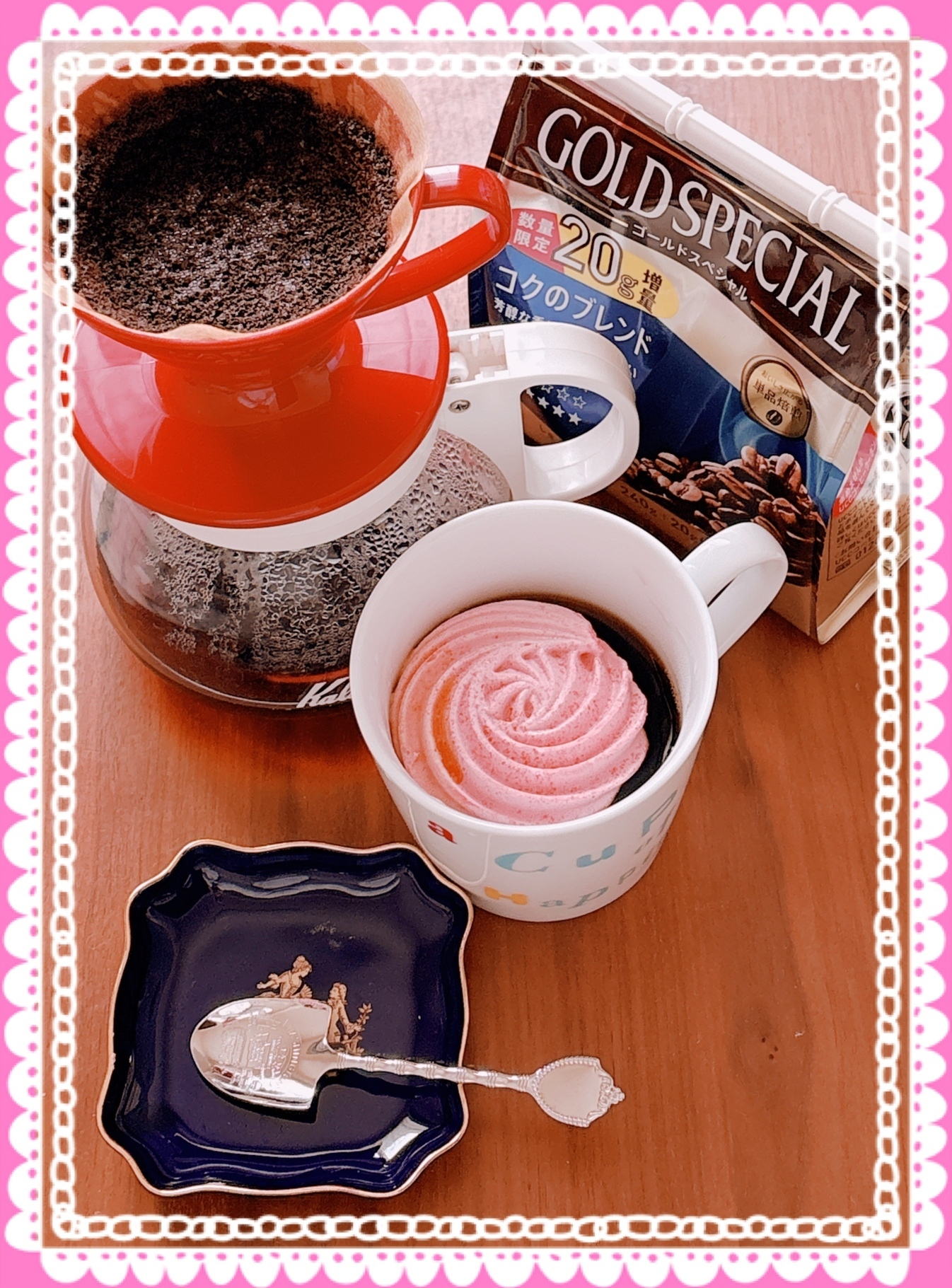 ちょい足しアレンジとして、やってみたかったゴールドスペシャル コクのブレンドに苺メレンゲを足してみました。