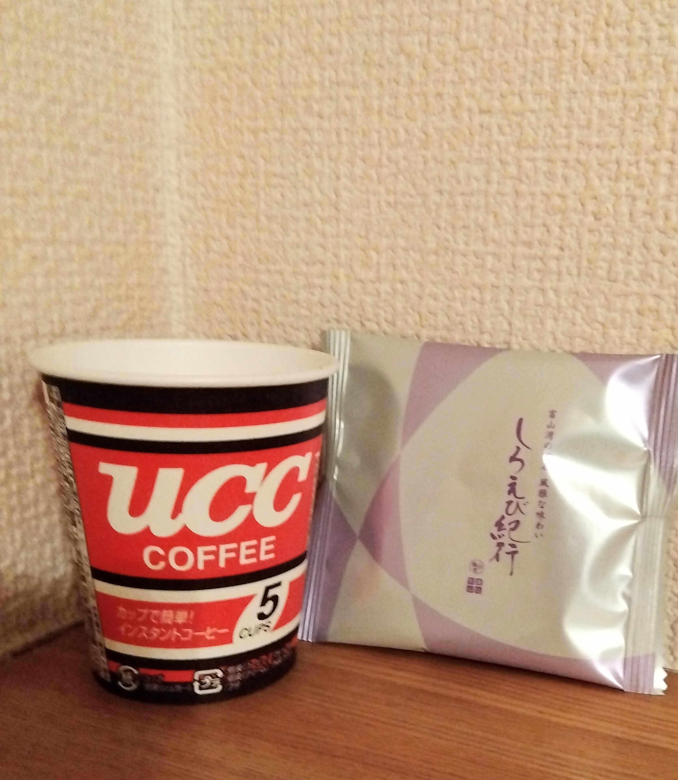 エビせん食べよう 最近はコーヒーをブラックにすることが増えた