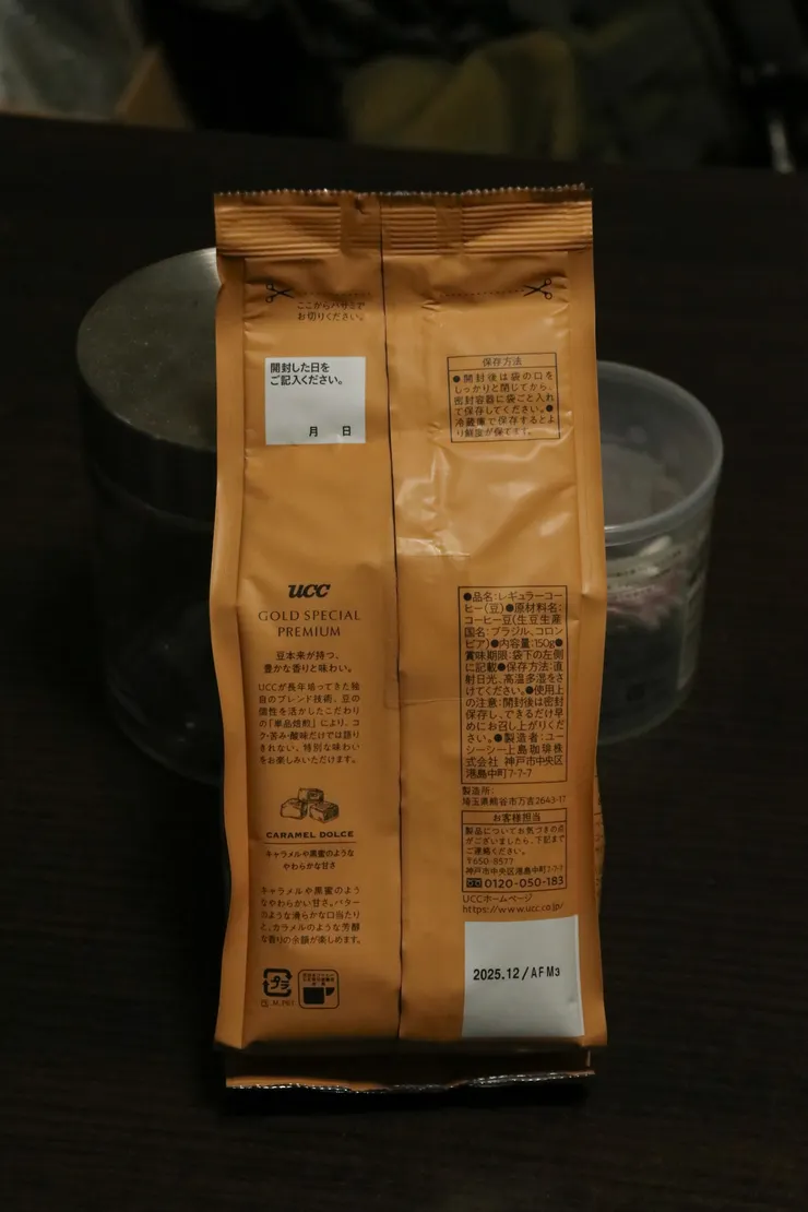 そもそも売ってるスーパーが少なく、売っていても粉の状態が多くて全然買えなかったのですが、ようやく豆で売っているところを見つけたので期間限定のキャラメルドルチェを買ってきました。