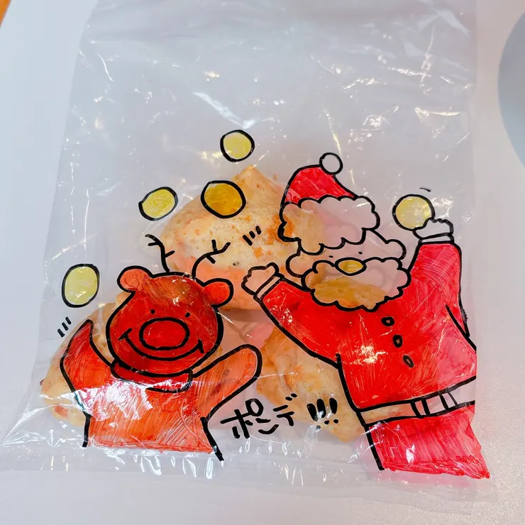 ポンデケージョの袋が全て手描きの可愛いイラストいりだったので、思わず店員さんに声をかけてしまいました╰(*´︶`*)╯