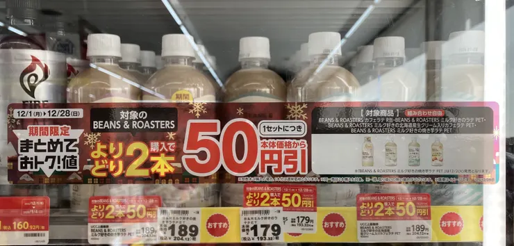 しかも、「BEANS&ROASTERS」シリーズをよりどり2本購入するとなんとなんと50円引きになるという太っ腹キャンペーン中でした☺️