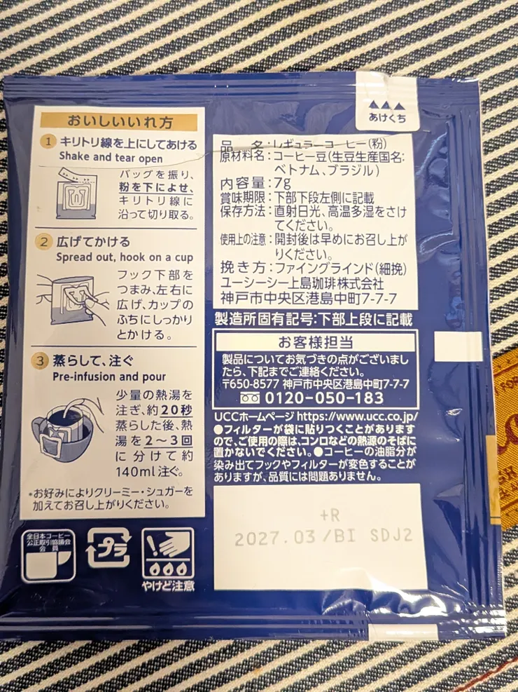 本日は、苦みが少なくて飲みやすそうなマイルドブレンドをいただきました。パッケージがよく見えるように後ろから開封、パックを開けた瞬間からふわっと香りがしました。