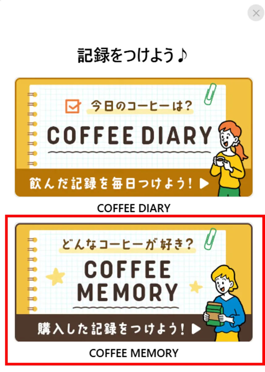 ②「COFFEE MEMORY」をクリックする。