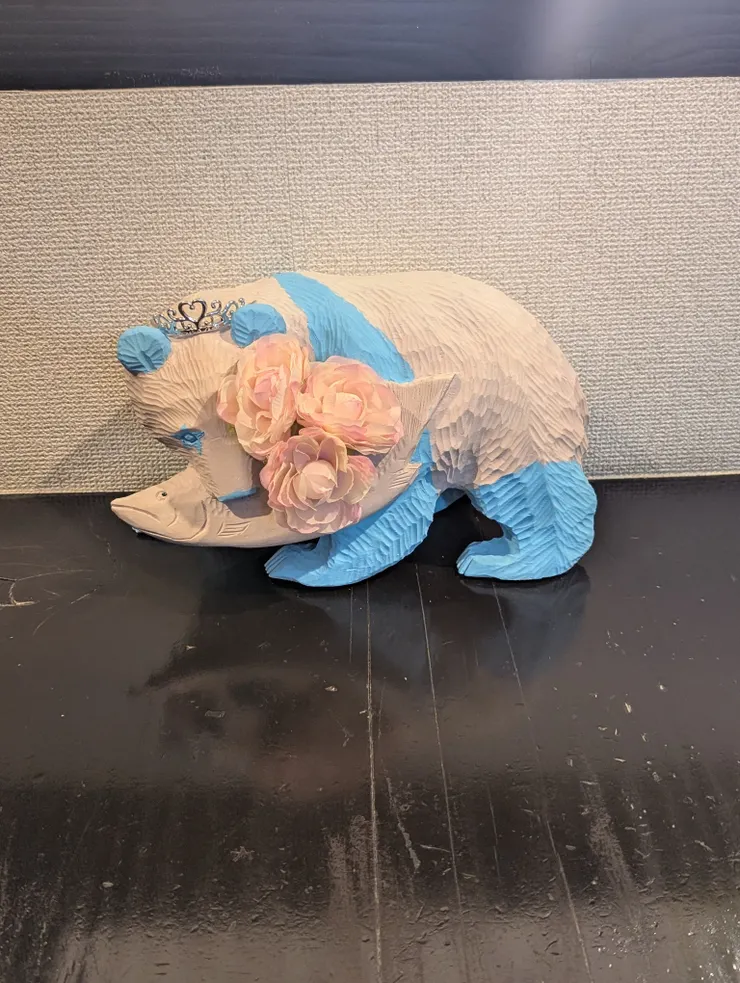昭和のお土産の定番で(たぶん)いろんなお宅に鎮座していた木彫りの熊も
