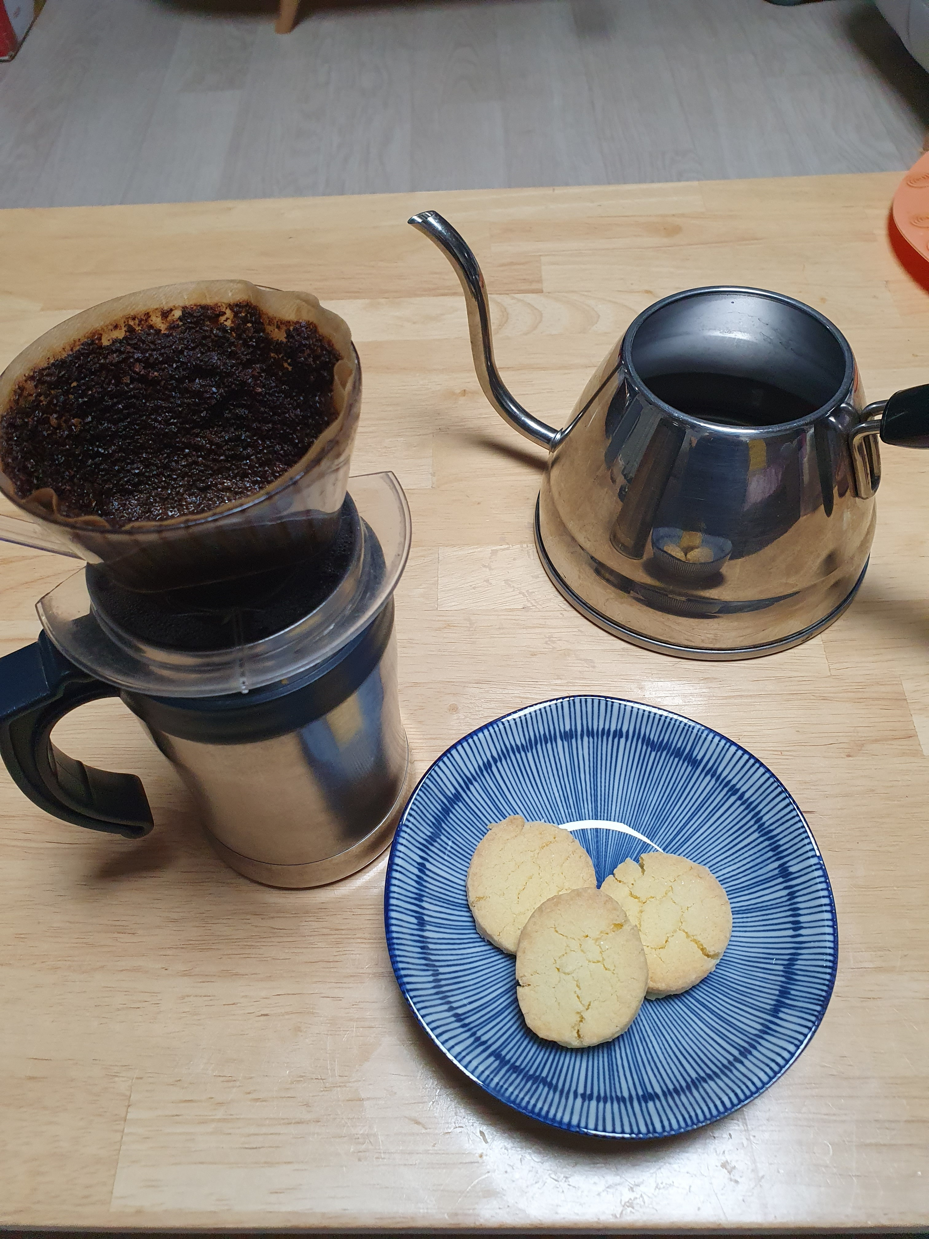 トップ > コーヒーギャラリー > 今日の一杯 > バターサブレ まあち 2026/02/06 21:01 バターサブレ 息子(調理師の卵)と、バターサブレ作りました。 レシピ通り無塩バターで作ったけど、なにか少し物足りないような… 塩ひとつまみ入れた方が良かったかな? また色々試してみます。 いいね 共有する 共有する X facebook LINE リンクをコピー コメントする 1 件の返信 (新着順) ミュートしたユーザーの投稿です。 投稿を表示 SORORI 2026/02/07 00:25 なにか少し物足りないような サブレ3枚では足りません・・。あと10枚はほしい・・。 いいね 返信する ミュートしたユーザーの投稿です。 投稿を表示 まあち 2026/02/08 18:07 SORORI あはは!たくさん出来たんですよ。このとき食べたのはこの3枚だけだけど。 いいね 返信する
