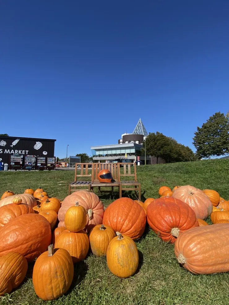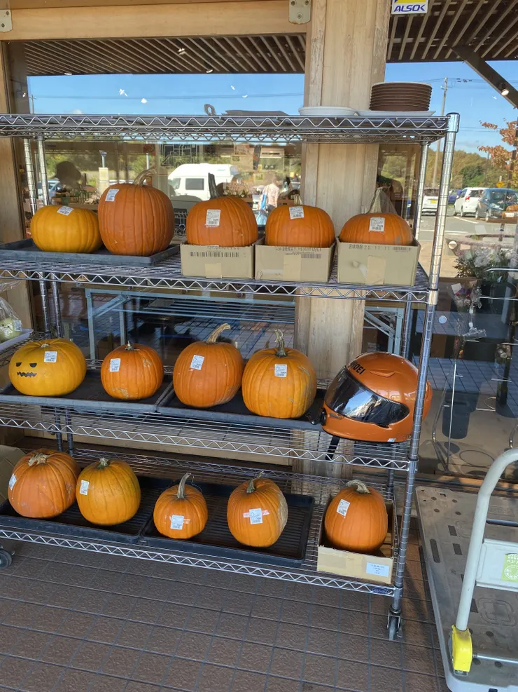 道中立ち寄った道の駅にオバケカボチャがたくさん並び始めてました。
