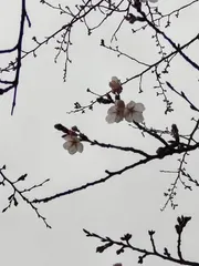 開花🌸 会社の染井吉野が開花しました。生憎の曇天できれいな画像ではありませんが春の訪れをお裾分けです🌸今日の一杯は濃い目のカフェオレ☕
