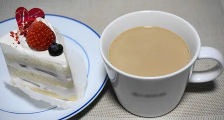 今日が本番 クリスマスは所詮他人の誕生日なので、今日が本番です。 そんな日の一杯は、温かいカフェオレと苺ショートです。くちどけの良いスポンジと、ミルク感がありながらさっぱりとしたクリームが美味しいです。ちょっと(かなり)高かったのですが・・。