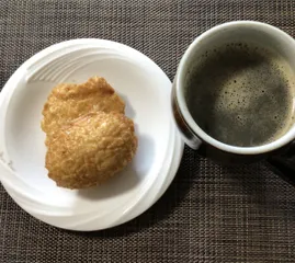 今日はこちらも気温が低下しています特に風が冷たいですホットコーヒーを飲んで一日頑張ります今日のコーヒーのお供はこちらで作られている 亀甲焼あまから味でおいしいですブラックコーヒーにも合いますしかしとっても硬いです