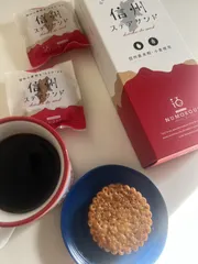 栗とさつまいものをあわせたクリームのスイートポテトのような食感の中にドライ林檎をアクセントにしさつまいものサブレでサンドしたお菓子✨コーヒーととてもよく合います♪