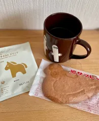 3時のおやつは「鳩サブレー」🐦コーヒーは無印のオリジナルブレンドコーヒーライトテイスト。鳩サブレーの素朴な甘みとコーヒーでまったりちなみに鳩サブレーは頭から食べる派です😅