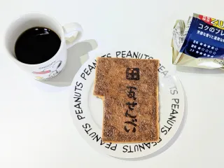 ちょっと焼き直したらサクサクが戻って美味しい🍎コーヒーはビッグAで買ったブランド不明品...苦味強め