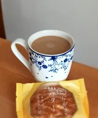きょうのおやつ きょうのおやつは、ミルクたっぷりのコーヒーと、バターどら焼きです。どら焼きはバターの塩気がきいていて、甘過ぎずおいしくいただきました😊 どら焼きの模様、きれいー✨