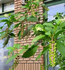 ヨウシュヤマゴボウとコーヒーカップ 初めて目にしたもので馬酔木ではないし、なんだろう? ヨウシュヤマゴボウまたは、アメリカヤマゴボウという雑草でした。名前は、根っこの部分が、ごぼうに似ているからついたもののようです。 ブドウの様な赤紫の果実がなっています。ブルーベリーにも似ている。生け花に使ったりインテ