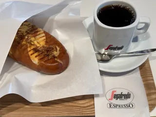 カフェのコーヒー プレッチェルドッグとコーヒーがマッチしていました(^^)