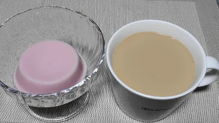 いちごみるく〇〇〇〇〇 今日のオヤツは、カフェオレといちごみるく・ 胡麻どうふです(笑) 心配していた胡麻どうふ感は食感だけで、味はほぼいちごみるくだったので違和感が無くて美味しかったです。