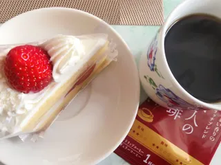🍓ショートケーキと おやつに🍓ショートケーキとコーヒー飲みました。