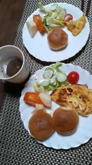 パンとコーヒー、卵焼き、サラダが定番です。
