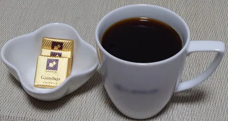Gianduja 今日の一杯は、カレ・ド・ショコラのジャンドゥーヤと。 口の中でゆっくり溶かすと、ヘーゼルナッツ&アーモンドの香りとコクがあって美味しいです。苦めのコーヒーと良く合います。