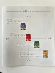 皆さん悩むのがよくわかります 暮らしの中の様々なシーンに、それぞれのタイミングで選べるのが職人の珈琲シリーズなのかな?その中で一つを選ぶって結構大変ですね😊自分なりに口にした時の直感でチャート図に表してみたけど、時間経過した段階で改めて見ると評価が変わってる気もします。【1番好きだったブレンド】リッチブレンド【研究メモ】今回の飲