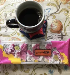 息子からのお土産 今日のブラックコーヒーのお供は息子からのお土産の筑紫もちです〜ブラックコーヒーを飲みながらじっくり味わっています✨