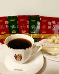 職人の珈琲のリッチブレンド🟥と職人の珈琲のスペシャルブレンド🟩赤と緑を交互に並べたら、一気にクリスマスの雰囲気です💕 ケーキはキャラメルチーズケーキ(ヤマザキ)です。スポンジとチーズスフレとクリームの3層の上に、サクサクのクランブルがトッピングされてました😊コーヒーはリッチブレンドをいただ