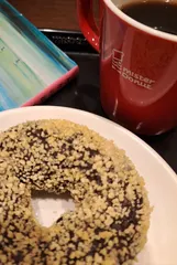 仕事帰りに読書 今年最終出勤日の前の日、仕事帰りに1時間半ほど ドーナツカフェで読書♪ 今日の自分への労いと、自宅へ帰るための切り替えのじかんです