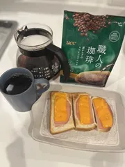 今朝はPascoの超熟山型6枚切りにハムとチェダーチーズを乗せて焼いてみました! 少し焦げたパンのコクと、コーヒーの深みがマッチして美味しい朝食になりました。