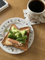 ブロッコリーの芯ぽりぽりしてて😋好きです。豆も少し育ってきたので収穫しました。