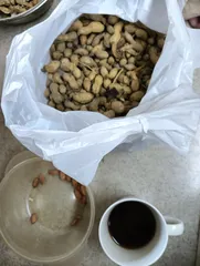 落花生の処理をしながら、いただきます。