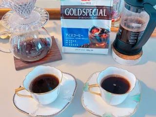 同じ「ゴールドスペシャル アイスコーヒー」の粉を、ハンドドリップとコーヒープレスで贅沢に飲み比べ。ドリップ: フィルターを通ることで雑味が消え、驚くほどクリーンでまろやかな口当たりに。プレス: 重厚なコーヒーオイルをダイレクトに。飲み干した後のカップの底に残る微粉が、その濃厚な旨味を物語っています…