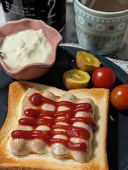 ウインナートースト ウインナー贅沢に使いすぎなのでこどもと半分こ😅