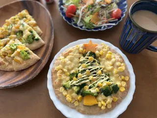 クリスマスツリー風ピザで朝ごはん⭐︎ 本番まであと4日♪